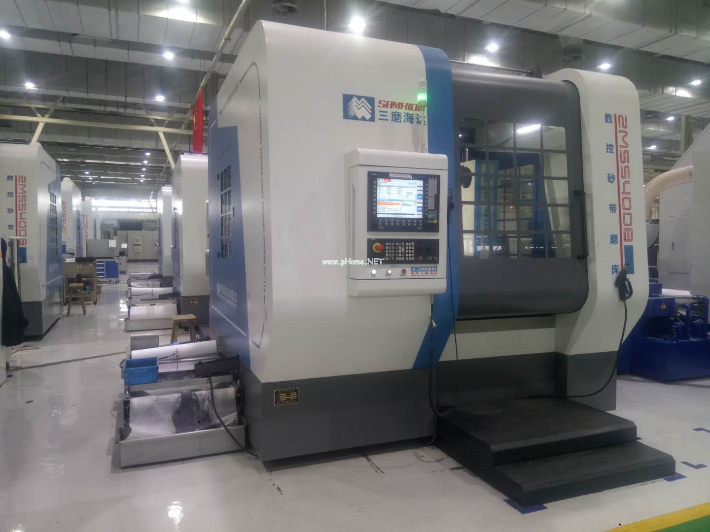 1.專用于復雜曲面零件的表面磨削,以砂帶為磨具,工件夾持于A軸工裝上,精密砂帶磨頭安裝在可二軸(B、C軸)回轉(zhuǎn)和二坐標(Y、Z)移動的磨頭架上,采用高檔數(shù)控系統(tǒng)控制,可對工件表面進行粗磨、精磨和拋光自動化加工。